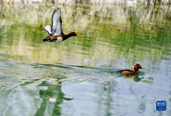 5月6日在拉魯濕地拍攝的白眼潛鴨。新華社記者 張汝鋒 攝