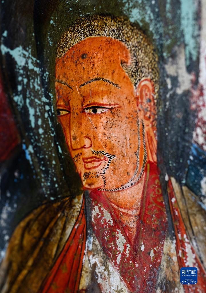 這是5月26日拍攝的皮央石窟壁畫中的長胡子的人物造型。新華社記者 費茂華 攝