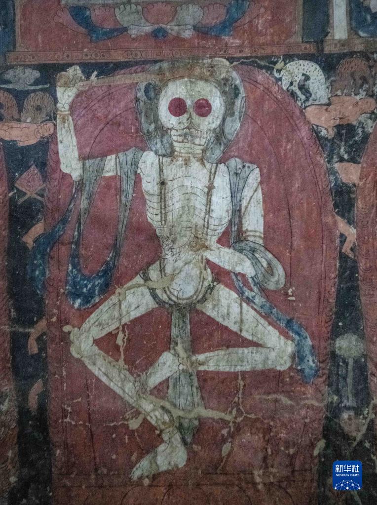 這是5月26日拍攝的皮央石窟壁畫中的骷髏造型。新華社記者 晉美多吉 攝