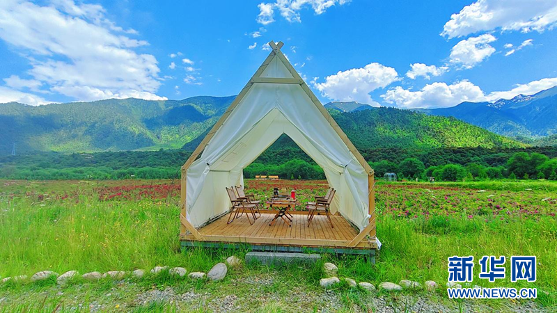 “游客在這里不僅可以賞花、采摘,還能體驗露營、親子樂園、燒烤等娛樂項目?!惫げ蓟ü绒r(nóng)業(yè)觀光生態(tài)園負責人李磊介紹道,“園區(qū)除了支付朵當村土地租金,還雇了不少村民在這里工作?!?/p>