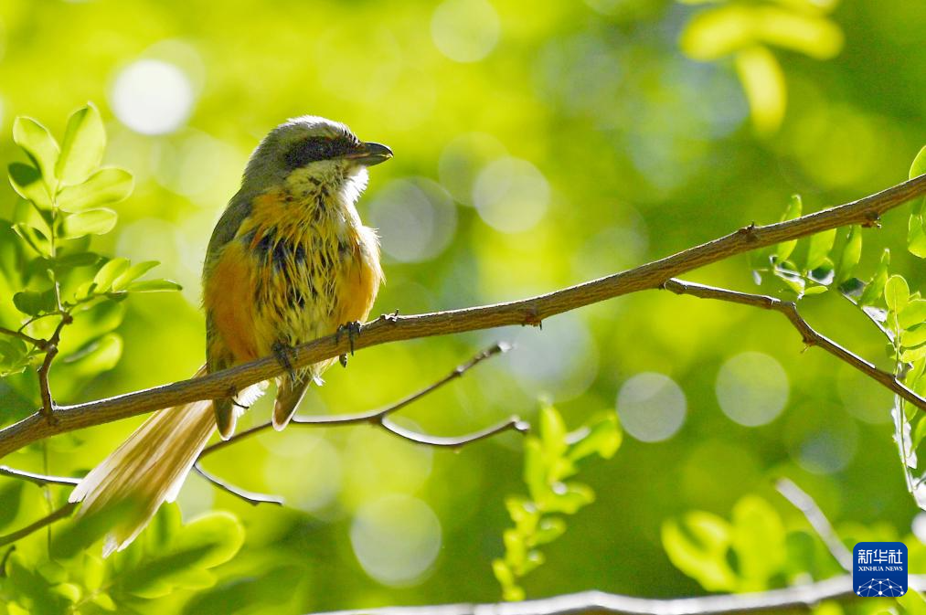 一只伯勞在拉薩市城關(guān)區(qū)一處庭院樹枝上為幼鳥“警戒”(7月28日攝)。新華社記者 張汝鋒 攝