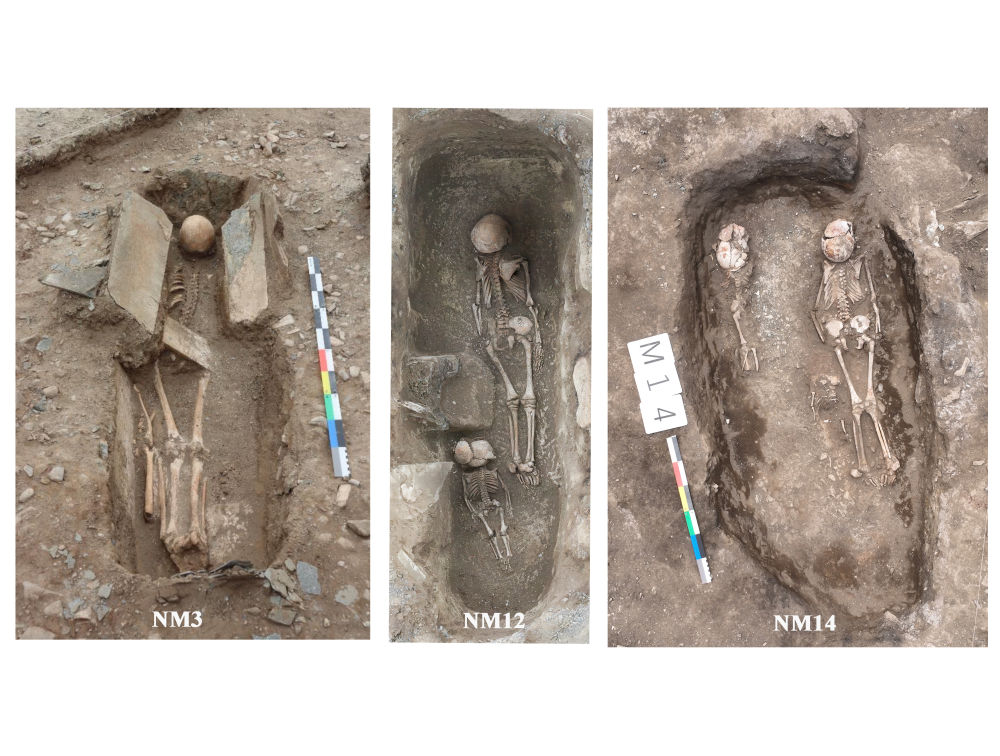 瑪不錯第一期遺址(距今4500-4000年)墓葬中俯身直肢石棺墓和土坑墓(資料照片)。新華社發(fā)(西藏自治區(qū)文物保護研究所供圖)