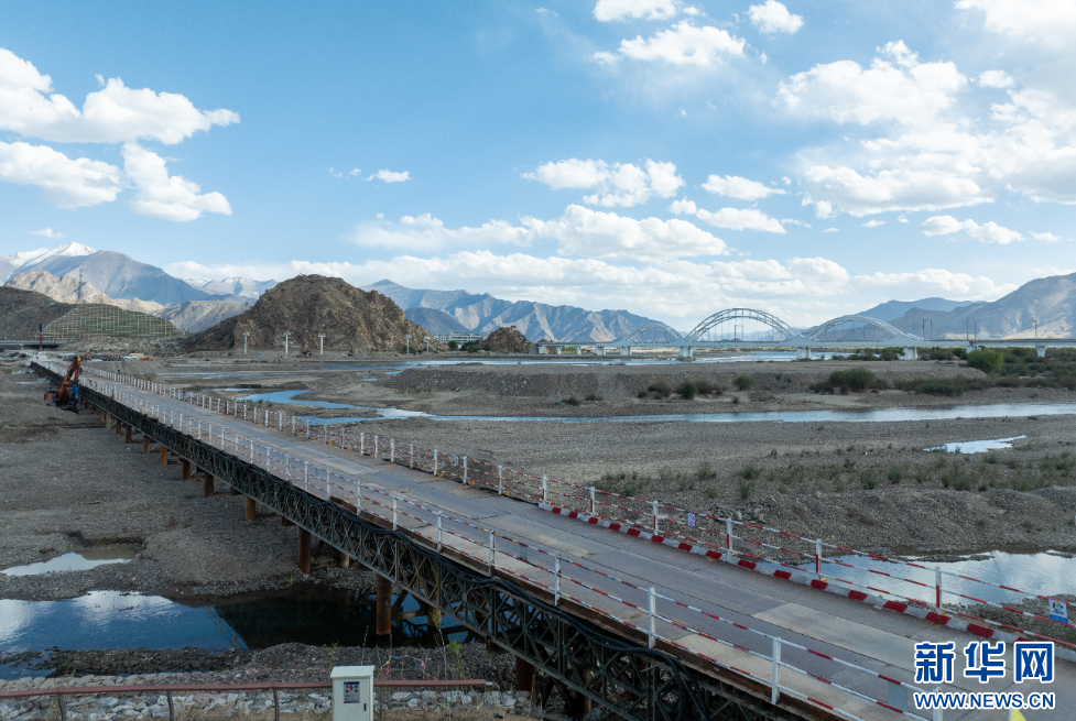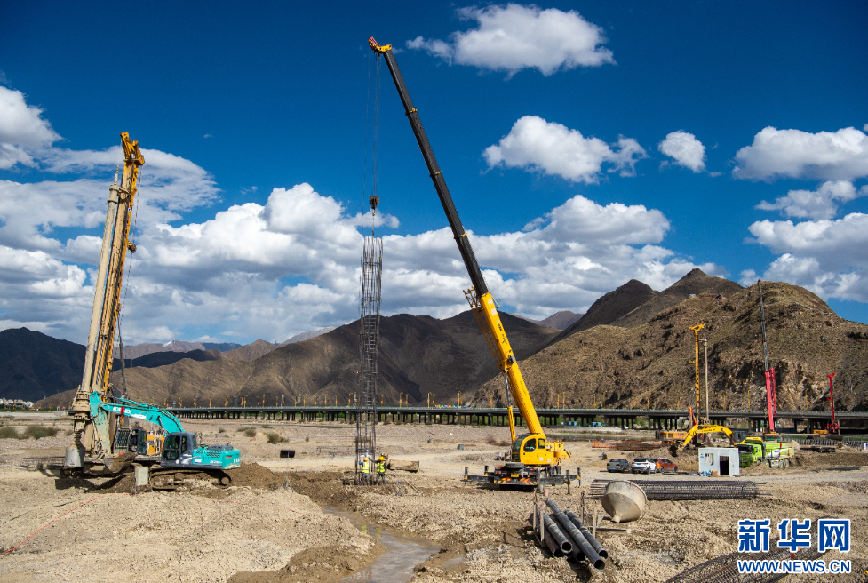 這是5月12日拍攝的拉薩高新大橋施工現(xiàn)場。新華網(wǎng) 旦增努布 攝