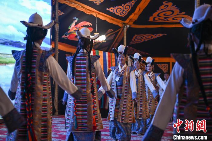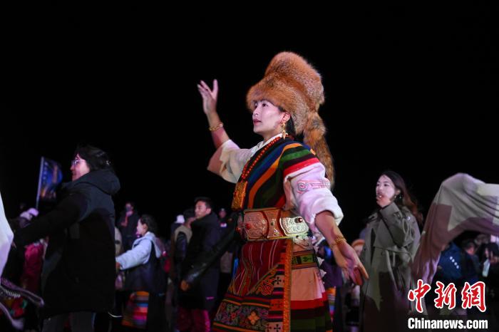 圖為“情定當(dāng)雄”篝火鍋莊晚會(huì)文藝演出現(xiàn)場。中新社記者 貢嘎來松 攝