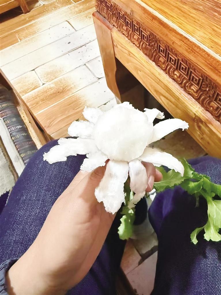 記者注意到,為了能賣個好價錢,街頭的不少商販把“妞瑪”清洗得干干凈凈的,還會幫顧客剝皮?!版が敗泵磕瓴貧v4月中旬成熟,本地很多人都喜歡吃,算是一種夏日解渴美食,因此銷量也很不錯。