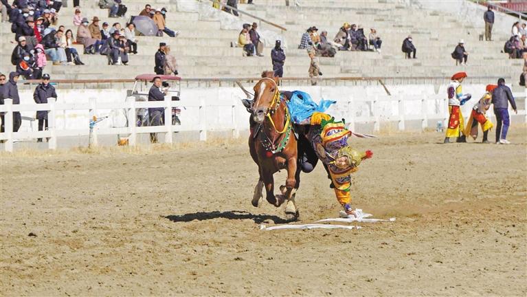馬術(shù)表演者表演拾哈達。