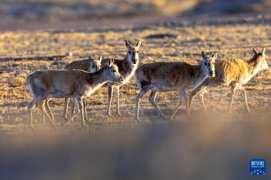 在羌塘國(guó)家級(jí)自然保護(hù)區(qū)核心區(qū)拍攝到的雄性和亞成體雌性藏羚羊(6月9日攝)。新華社記者 旦增尼瑪曲珠 攝 ??