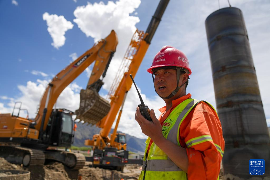 工人在進(jìn)行樁基機(jī)械成孔作業(yè)(6月18日攝)。新華社記者 晉美多吉 攝 ??