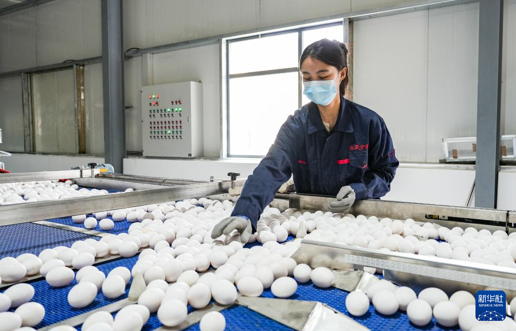 7月4日,工作人員在西藏宏農(nóng)農(nóng)業(yè)發(fā)展有限公司蛋雞養(yǎng)殖場(chǎng)內(nèi)篩選雞蛋。新華社記者 蔣夢(mèng)辰 攝