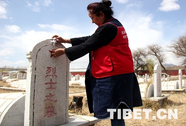 在肅穆寧靜的拉薩烈士陵園內(nèi)也有很多不知不知已在此長(zhǎng)眠了多少年的無名烈士。讓人欣慰的是,每年清明時(shí)節(jié)都有人來為他們進(jìn)行祭掃。扎西新村社區(qū)副主任張艷說:“扎西新村社區(qū)的志愿者們每年都會(huì)自發(fā)前來為陵園內(nèi)的無名烈士們祭掃,讓無名英雄們不孤單?!保ㄖ袊?guó)西藏網(wǎng) 圖、文/賈華加)