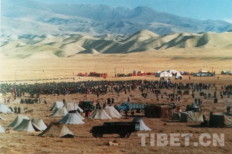 圖為渴盼得到十世班禪大師摩頂?shù)娜罕姳燃缃吁?,匯聚草場,恭候那一幸福的時刻。