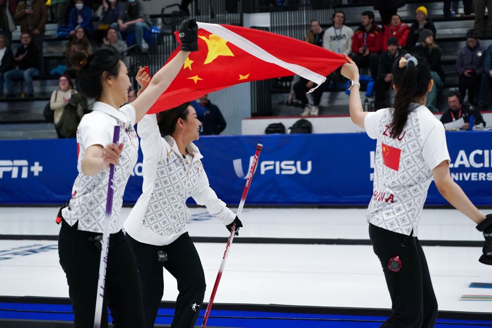 2023年1月22日,在美國(guó)普萊西德湖舉行的世界大學(xué)生冬季運(yùn)動(dòng)會(huì)女子冰壺決賽中,中國(guó)隊(duì)以6:4戰(zhàn)勝韓國(guó)隊(duì),奪得金牌。新華社發(fā)