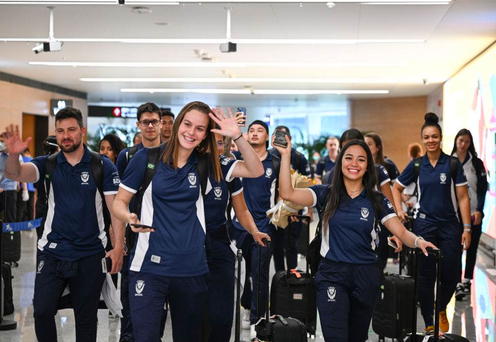 7月21日,巴西代表團(tuán)運(yùn)動(dòng)員抵達(dá)成都天府國(guó)際機(jī)場(chǎng)。新華社記者 王曦 攝