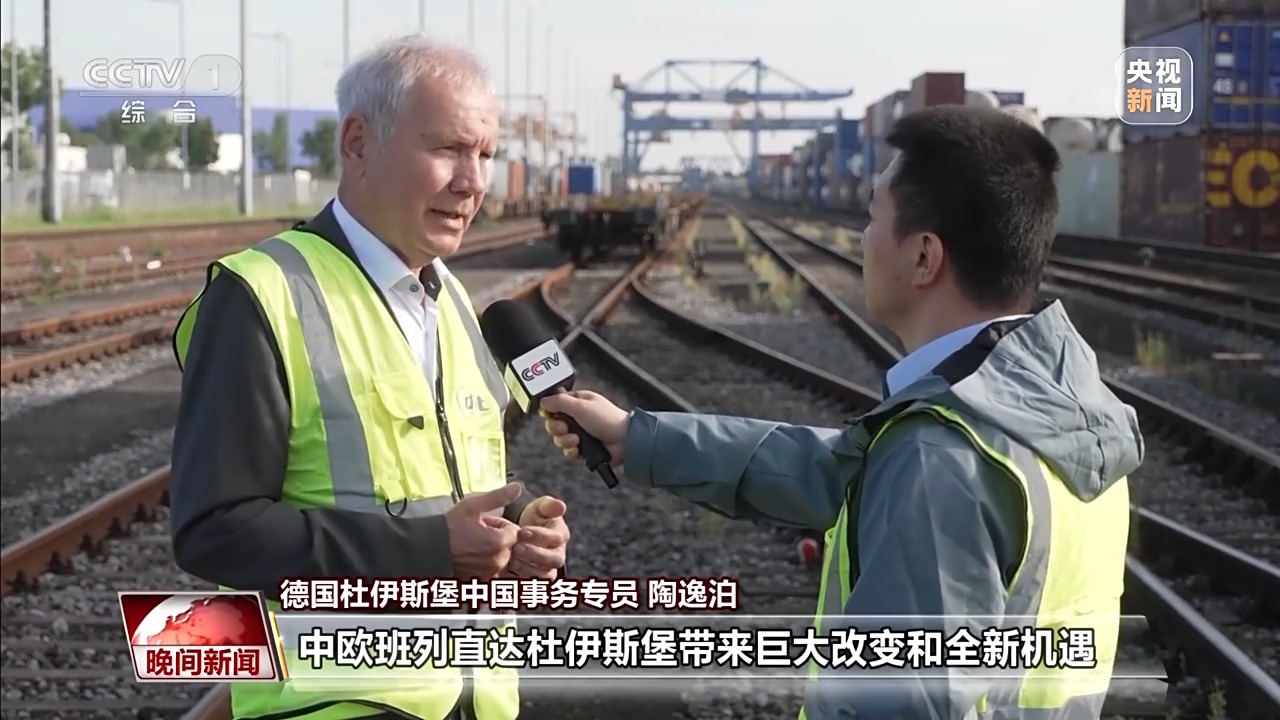 德國杜伊斯堡中國事務(wù)專員 陶逸泊:中歐班列直達(dá)杜伊斯堡帶來巨大改變和全新機(jī)遇。這條線路綿延上萬公里,從中國出發(fā)穿越6個國家,抵達(dá)我們這里。一切工作能在十幾天內(nèi)完成,非常了不起。
