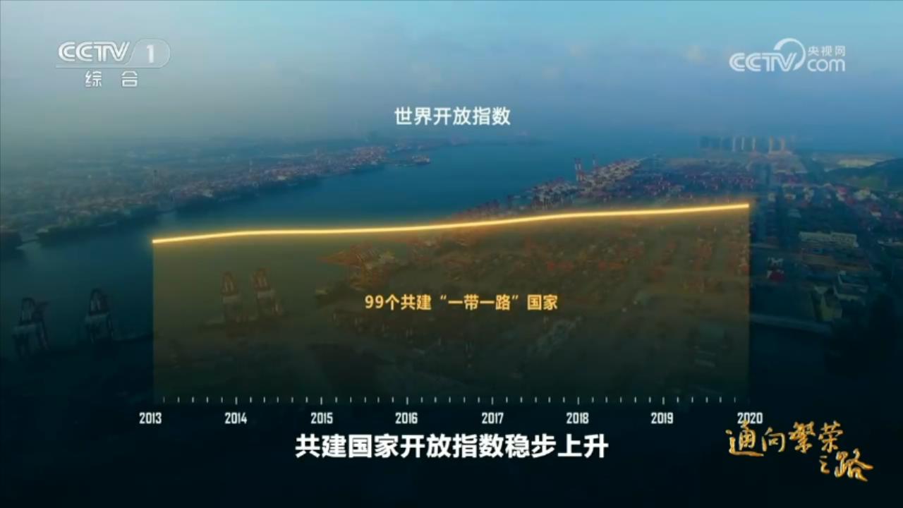 在每年進(jìn)博會發(fā)布的世界開放指數(shù)中,可以清晰地看到:共建“一帶一路”倡議提出以來,共建國家開放指數(shù)穩(wěn)步上升,和逐漸下降的全球開放指數(shù)走出相反的趨勢。